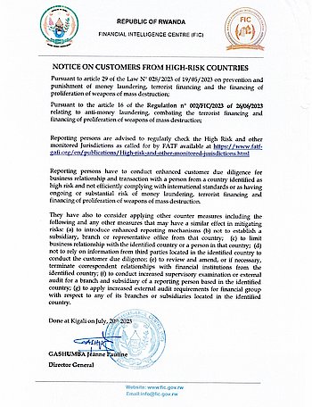 FIC has issued a notice that advises reporting persons to regularly check the High-Risk and other monitored jurisdictions as called for by FATF.
